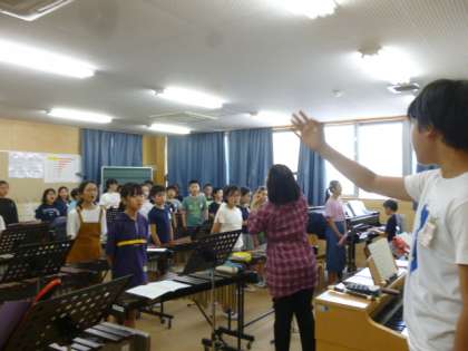 ハーモニーフェスティバルに向けて練習に励んでいます。今日は指揮者をたてて演奏を合わせる練習をしました。前回よりも細かなところがレベルアップし,子どもたちも「合わせる」ことに意識が少しずつ向いてきました。残り少ない練習時間を大切にし,さらに美しいハーモニーを奏でていきたいと思います♪