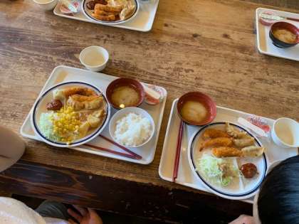 今日の夕食は、エビフライや揚げ餃子、ミニハンバーグが人気でした。