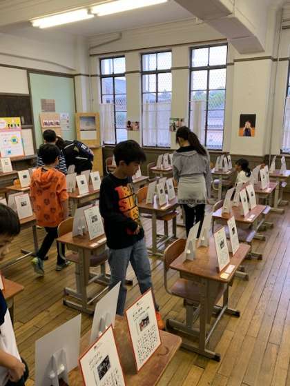 5・6時間目に,元淳風小学校で開催中の京都国際映画祭をみに行きました。子どもたちはみんな,自分たちの作品が飾られているのを見てとても喜んでいました。