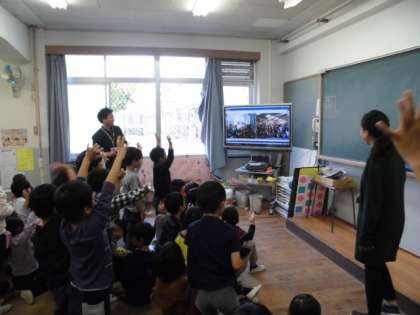 楊梅幼稚園のお友だちと一緒に「秋みつけ」に行ってきた1年生は,見つけてきた秋の自然物を使ってたくさん遊びを考えています。