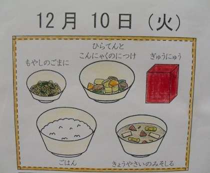 今日の献立は「ごはん・牛乳・平天とこんにゃくの煮つけ・もやしのごま煮・京野菜のみそ汁」でした。京野菜のみそ汁には,京野菜の聖護院大根や金時にんじん,せりが入っていました。子どもたちは,「いつもより野菜が甘くておいしかった」「京野菜全部分かったよ」と野菜を意識して,味わっておいしく食べていました。