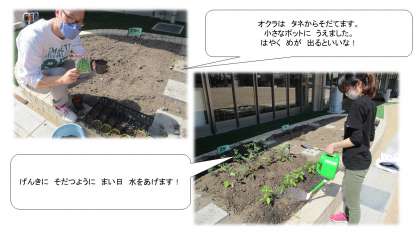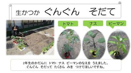 先生たちで 2年生のかだんに やさいのなえを うえました。