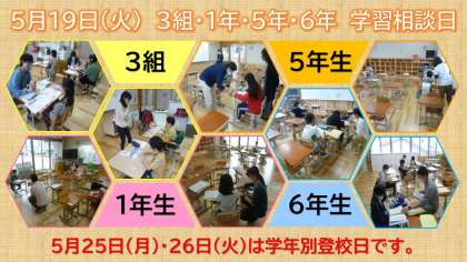 本日19日は,3組・1年生・5年生・6年生の学習相談日でした。
