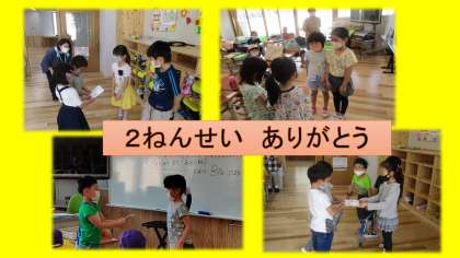 何かな・・・??なんと,2年生が「あさがおのたね」を持ってきてくれました。1年生へのプレゼントだそうですよ♪