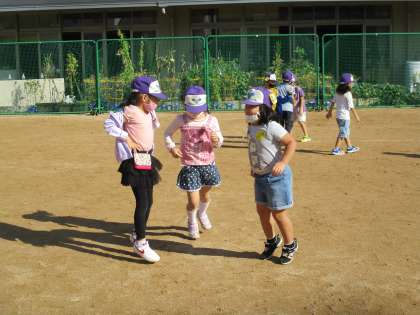 お友達とタイミングを合わせてジャンプしたり,目と目をにこっと合わせて前に進んだりと,笑顔で活動している姿が,とても素敵でした♪