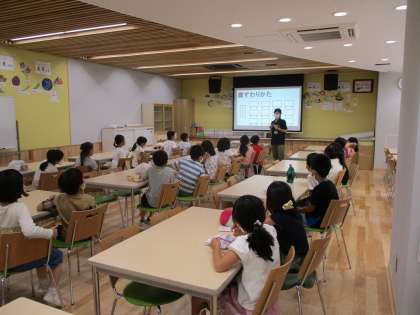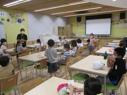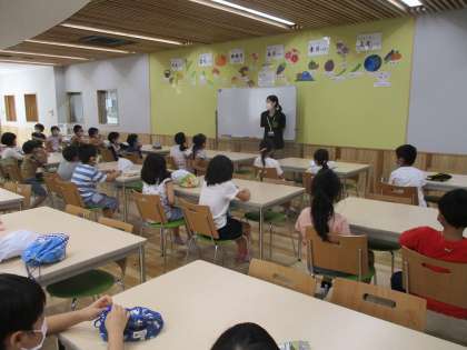 味覚には「あまい」「しょっぱい」「すっぱい」「にがい」があり,どの味もちゃんと味わえているかなと栄養教諭にたずねられていました。子どもたちは「よくかんで食べるとよい」や「五感をつかって食べるといい」など答えていました。