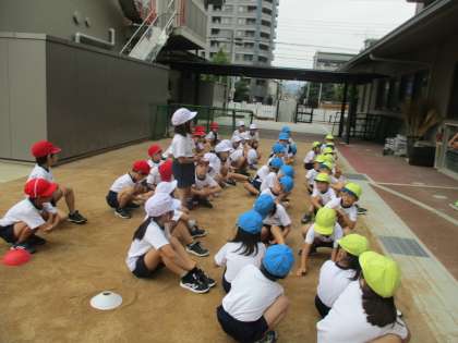 「うでを はやく ふったら いいよ!」「からだを すこし ななめまえに たおしてはしるといいよ!」「よういスタートのあしを だしやすいあしから だすといいよ!」「やるぞ!というきもちも だいじだよ!」など,子どもたちの走る工夫は様々,もっと速く走るために,力いっぱい走る姿が印象的でした♪