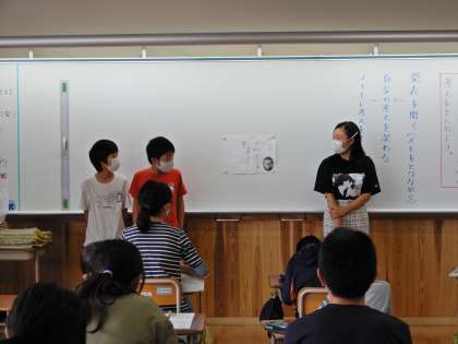 6年生の国語科では「やまなし」の学習をまとめました。「宮沢賢治がやまなしを通して伝えたかったこと」を考えるために,グループごとに学習計画を立て,学習を進めました。