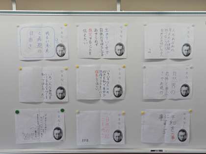 昨日は,調べてきたことをまとめ,全体で交流をしました。「宮沢賢治の生き方から〜」「比喩表現をたくさん使っていることから〜」「五月と十二月を比べると〜」等,文章からたくさんの根拠を見つけて,学級全体に堂々と伝える姿を見ることができました。