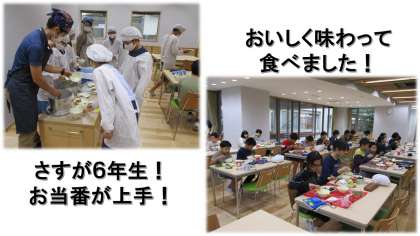 さすが6年生,お当番も早い,もりもりしっかり食べてくれます。