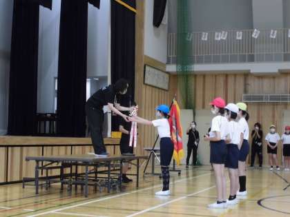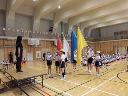 優勝旗・トロフィー返還,選手宣誓,全校体操とスポーツスポーツフェスティバルの始まりです。