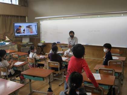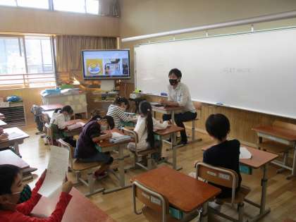 今日は「もっと もっと まちたんけん」で,アストレアさんが学校に来てくださって,コーヒー屋さんのお仕事についてお話を聞かせてくれました。