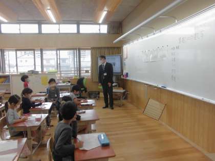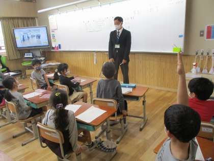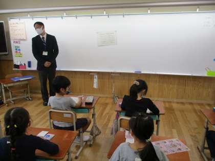 今日は「もっと もっと まちたんけん」で,下京中学校の先生が来てくださり,中学校ってどんなところなのかを教えてもらいました。