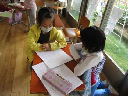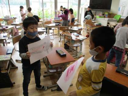 できたかくれんぼカードを友達と見合って,学習を深めました。
