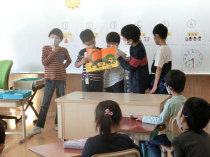国語科の話す・聞くの単元である「はんで意見をまとめよう」では,1年生に読み聞かせする本を話し合いで決めました。話し合いでは「司会」「記録」「時間係」を決めて話し合いました。司会の進行の難しさや,どうすればスムーズに話が進むかなど苦戦をすることもありましたが,どの班も目的に合った本を話し合いをすることで決めることができました。そして先週から実際に1年生に読み聞かせに行っています。中学年の頼もしい姿が見られ,成長を感じています。