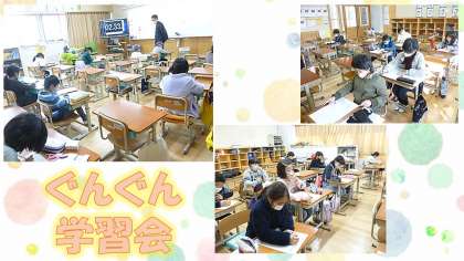 自分の力をさらにぐんぐんのばすために,自分でプリントを選んで取り組んでいます。こつこつ取り組んでいる姿は,とても輝いています。ぐんぐん学習会でのばした力を,家庭学習や学校での学習につなげていってほしいと思います。