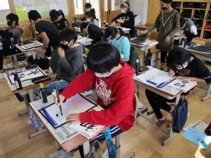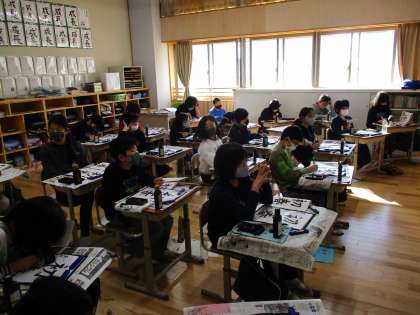 書写の時間に,書き初めを行いました。