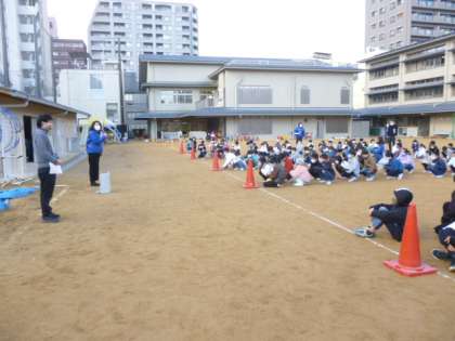 本日,避難訓練を行いました。休み時間中に地震が起きたという想定で訓練を行いました。運動場や教室,廊下,階段,トイレなどその場にあった避難行動を各自がとり,身の安全を確保しました。