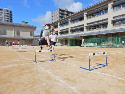 体育科の学習「ハードル走」では,リズミカルにハードルを走り越すことをテーマに毎時間の練習に取り組みました。友達とアドバイスをし合ったり,新記録を目ざして一生懸命練習に取り組む姿は,とても輝いていました。