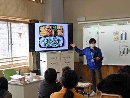12日(金)に中学校給食の試食体験学習を行いました。栄養教諭から中学生に必要なカロリーの話を聞き,実際に中学校給食を試食しました。持参弁当を選択する場合でも,中学生に適した量・内容に関心を持ち,心も体も大きく成長してほしいと思います。