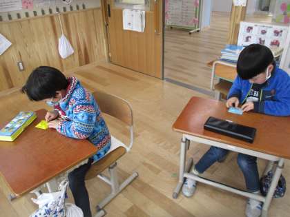 など,6年生へ渡す時のことを想像しながら,一生懸命つくる姿がありました♪どんなプレゼントかは,お楽しみです。早く6年生に渡したい!!と子ども達はワクワクです♪