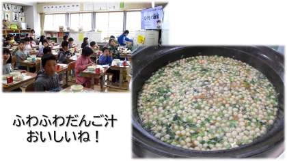 だんごは口の中に入れるとふんわりやわらかな食感で,もちもちつるつる,大好評でした。