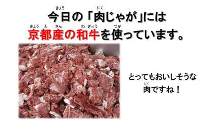 今日の「肉じゃが」は,京都産和牛を使用した地産地消の献立です。