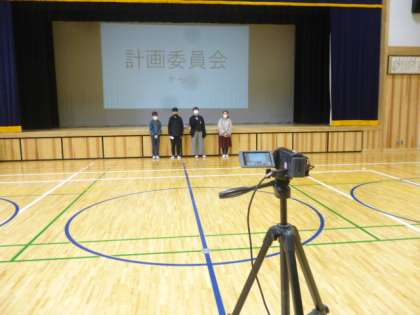 今年一年間は全校で集まることができなかった児童朝会でしたが,ライブ放送を活用して各委員会の取組を全校に発信することができました♪