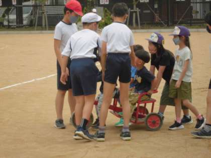 ちょうどそこに1年生や5年生が遊びに出てきました。