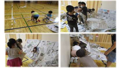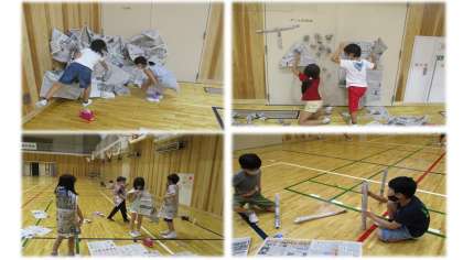 など,新聞紙を触りながら,やってみたいことをどんどん試して,思いついた活動を楽しんでいる様子がありました。新聞紙とたくさん仲良くなれました♪