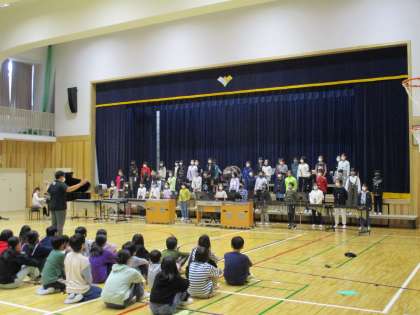 5・6年生のハーモニーフェスティバルを行い,5年生も,これまでの学習の成果を発表しました。今日に向けて設定した「探究・ふれあい・誇り」にかかわるめあても意識しながら,これまで取り組んできました。