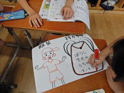 6年生の家庭科では,夏を涼しく過ごすための方法について考えています。本日は,夏に適した服装と持ち物について意見を交流しました。服の種類だけでなく,服の色まで考えて交流をする姿が見られました。気温がどんどん高くなるこれからの生活に生かしてほしいと思います。