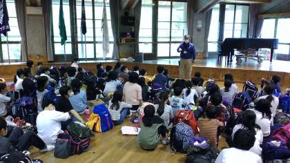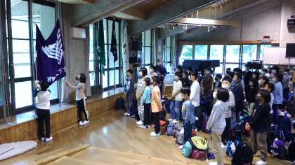 入所式では,山の家での過ごし方や活動での注意事項について所員の方からお話をしていただきました。子どもたちも落ち着いて入所式を終えました。