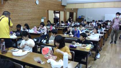 クラフト作りを終え,昼食タイムです。友達との間隔をとりながら,静かにお弁当を食べています。
