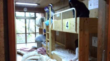 宿泊部屋に入り,興奮気味の子どもたちです。荷物の整理や就寝準備をしています。次は,少し早いですが入浴となります。しおり通りの時間で,順調に活動を進めています。