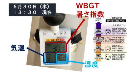 さて、本日13時30分現在、気温は37度超、暑さ指数が30超となり、熱中症のリスクが非常に高い状況となっております。