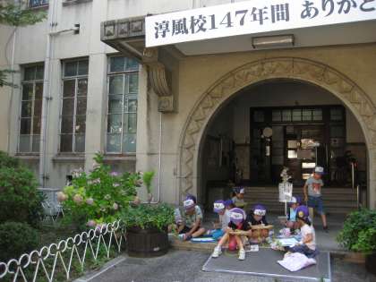 5月の「はるみつけ」に続き,生活科の学習でなつの訪れを見つけるために,元淳風小学校へ行ってきました。2〜3時間目に行う予定をしていたのですが,熱中症予防のために,少しでも涼しい1〜2時間目の時間帯に学習を行いました。