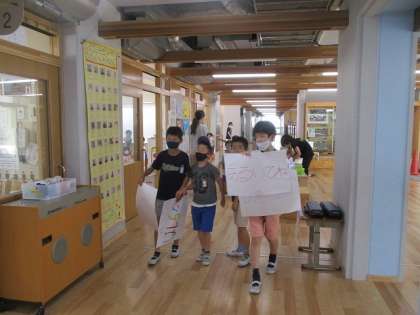 スポーツプロジェクトでは、みんなが安全に学校生活を送ることができるように、中間休みに校内を回って「走らずに歩こう」と呼びかけたり、クイズを配布したりしています。全校のみんなが気持ちよく過ごすことができるような下京雅小学校でありたいです。