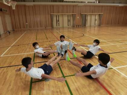 体育科では表現運動の学習をしています。グループで表現を考える場面ではどんなポーズをするかを考えました。友達同士意見を出し合って探究しながら表現を工夫する様子がありました。