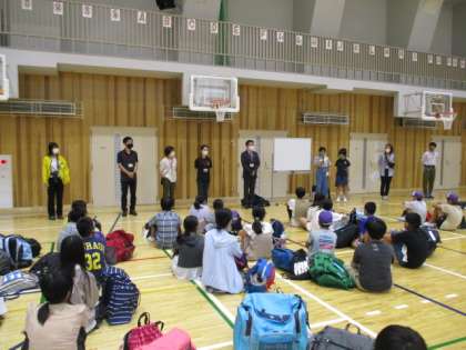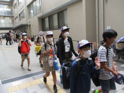 修学旅行の最初の活動は「出発式」です。6年生の司会進行のもと出発式を終えることができました。出発式を終え、子どもたちはバスに向かいます!