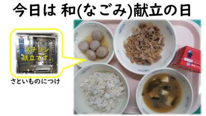 今日は和食推進の日、和(なごみ)献立の日、そして月見献立です。