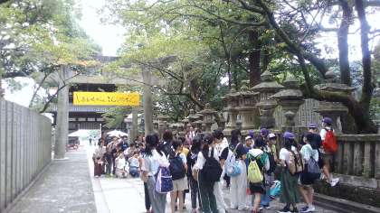 大門までの階段をみんなで登り切りました。今から御本宮まで上ったり、大門からおりて買い物をしたりして自由行動を楽しみます。