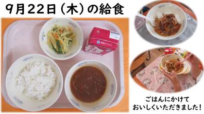 薄切りの牛肉とたまねぎがたっぷり入ったハッシュドビーフはどのクラスでも大人気でした。ホールトマト缶をしっかりいためて酸味を飛ばし、バターをたっぷり使った手作りのルーを加えて煮込んでいるのでとてもまろやかに仕上がりました。今日はごはんもどのクラスも完食!ごはんにかけて食べる献立は食べやすくておいしくていつも大人気です。