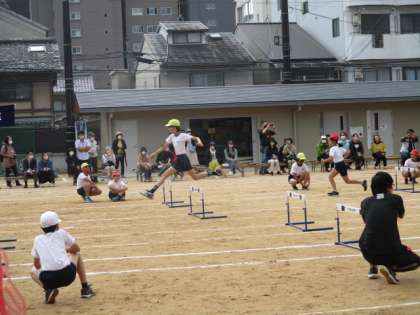 ハードルとハードルの間隔を自分で選び、より速く走り切ることができるよう学習を進めてきました。リズミカルにハードルを飛び越える5年生に大きな拍手がありました。