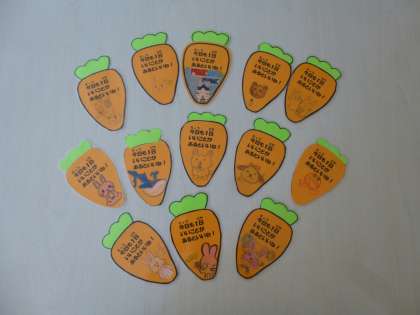 今日は月に一度の「ハッピーキャロットの日」でした。キャベツのすまし汁の食缶に1つだけハート型のにんじんが入っています。ハッピーキャロットが当たった児童にはアートプロジェクトのメンバーが制作した「ハッピーキャロットカード」がプレゼントされました。ハートのニンジンと、すてきなカードににっこりと喜ぶ姿がみられました。