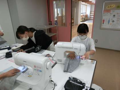 ナップサック制作が完成しました。自分で作ったことでより一層愛着もあり、嬉しそうに作ったナップザックを眺める様子がありました。「5年生で学習したことを生かして作ることができた!」など、今回の学習のふり返りもしっかりとできていました。