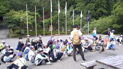 花背山の家最終日。昨晩はぐっすり眠れた様子でした。みんな元気に朝の集いをしています。現在気温は20度、天気は晴天です。