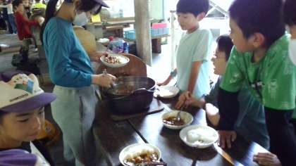 おいしいカレーができあがりました。みんなで協力して作ったカレーは格別です!
