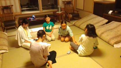 風呂に入り長旅の疲れをおとし、部屋の仲間と楽しい時間を過ごしました。
