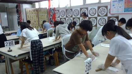 中野うどん学校にてうどん作り体験をしています。自分たちで作ったうどんを持ち帰って食べるのを楽しみにしながら一生懸命作っています。
